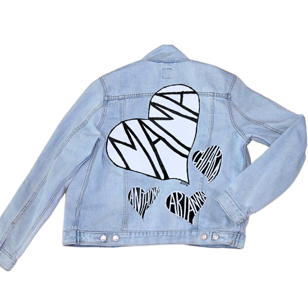 Introducing our heartwarming, hand painted masterpiece: Mama Women's Denim Jacket, a canvas of love and style that celebrates the unbreakable bond between a mama and her little ones. Crafted with care and creativity, this jacket isn't just an article of clothing; it's a symbol of cherished moments and precious memories.