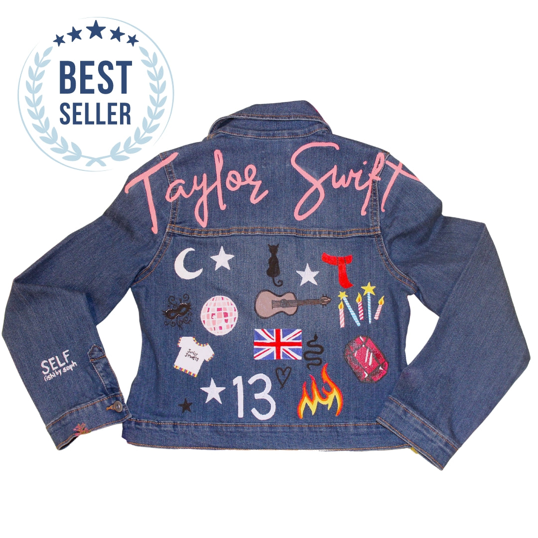 Dive into the enchanting world of Taylor Swift's music with this custom hand-painted denim jacket – a fashion piece that's "Fearless" and filled with "Sparks Fly" creativity. Let your little one express their unique style with strokes of "Red" and personalized touches inspired by Taylor's iconic songs.