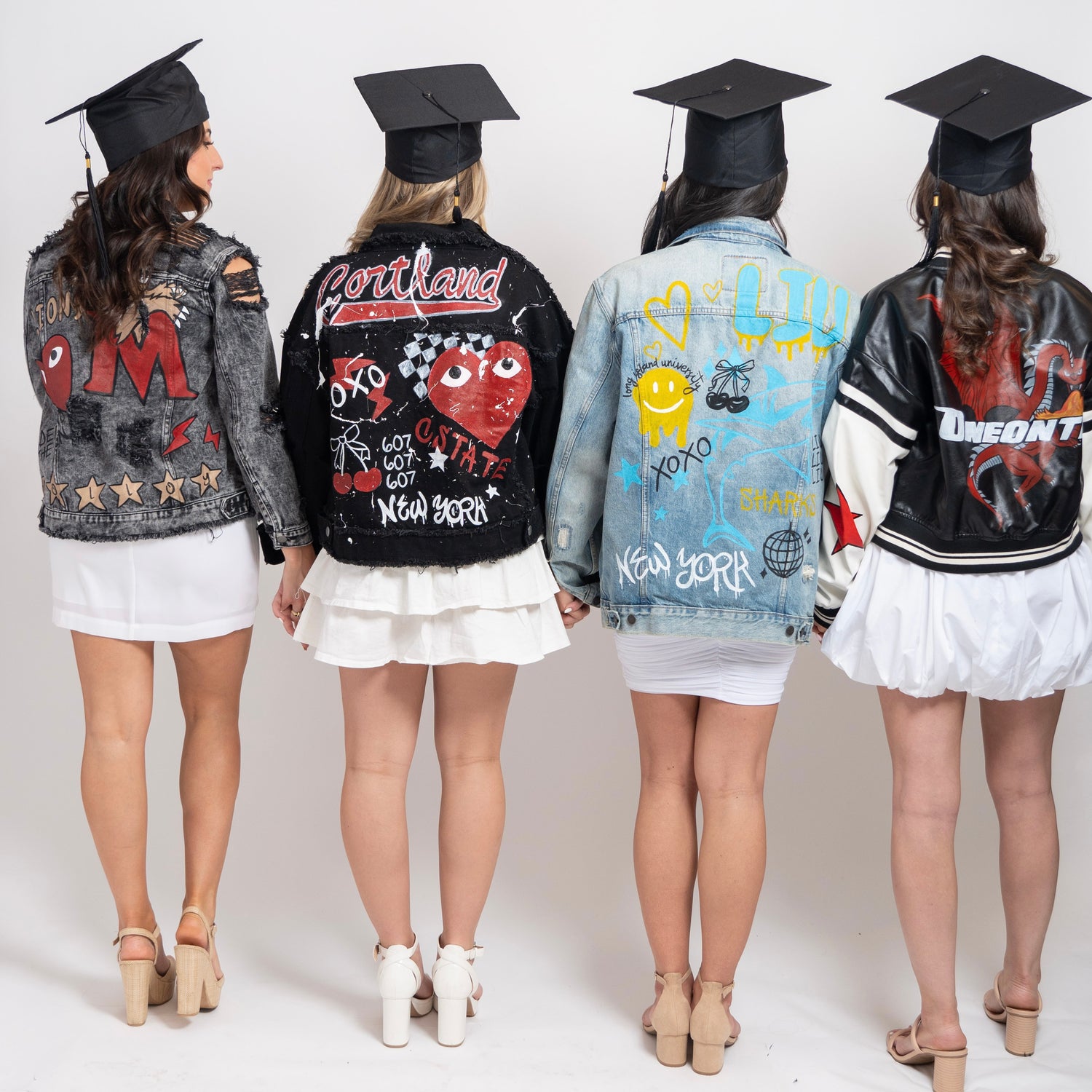 The ultimate blend of style, school spirit, and personalized flair! This isn't just any denim jacket; it's a hand-painted masterpiece tailored exclusively for you.